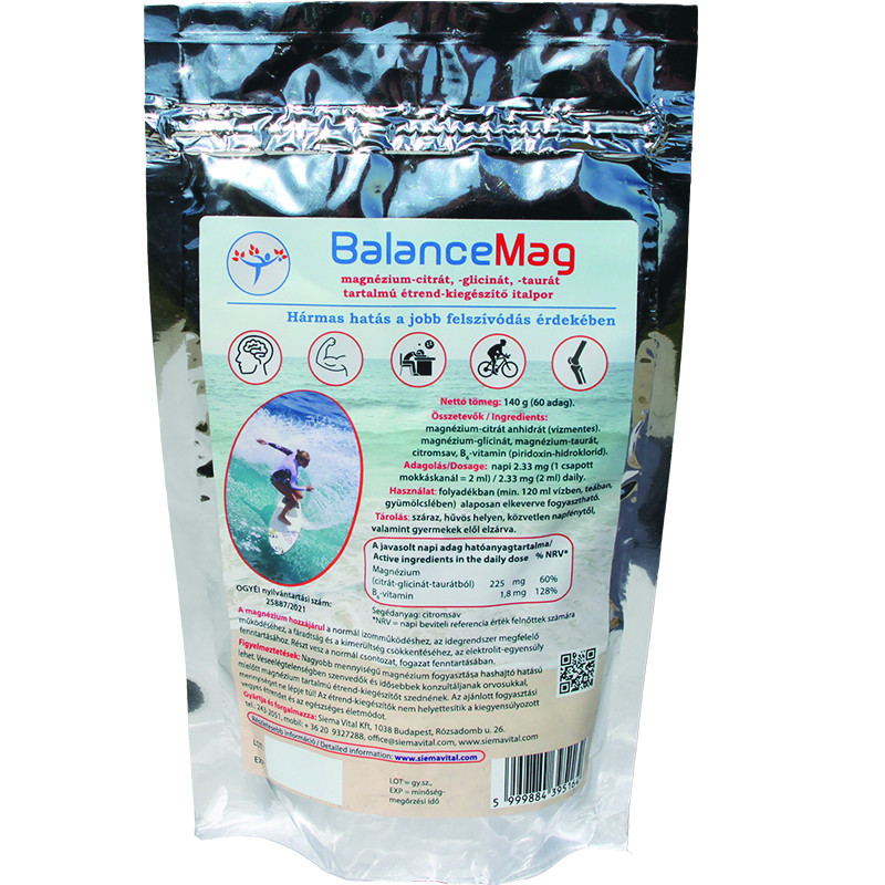Balancemag magnézium-citrát, -glicinát, -taurát tartalmú étrend-kiegészítő italpor 140 g