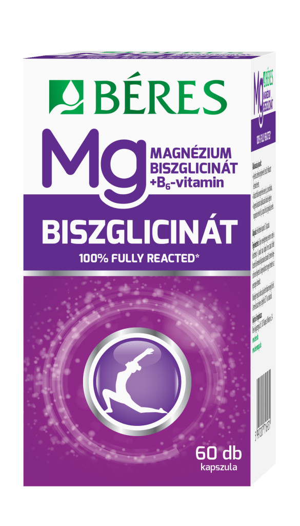 Béres Magnézium-biszglicinát + B6 kapszula étrend-kiegészítő készítmény szerves magnéziumsóval, magnézium-biszglicinát-dihidrát formájában és B6-vitaminnal.