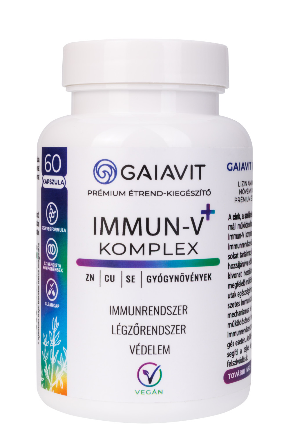 Gaiavit Immun-V+ komplex Lizin aminosavat, nyomelemeket és növényi kivonatokat tartalmazó prémium étrend-kiegészítő kapszula