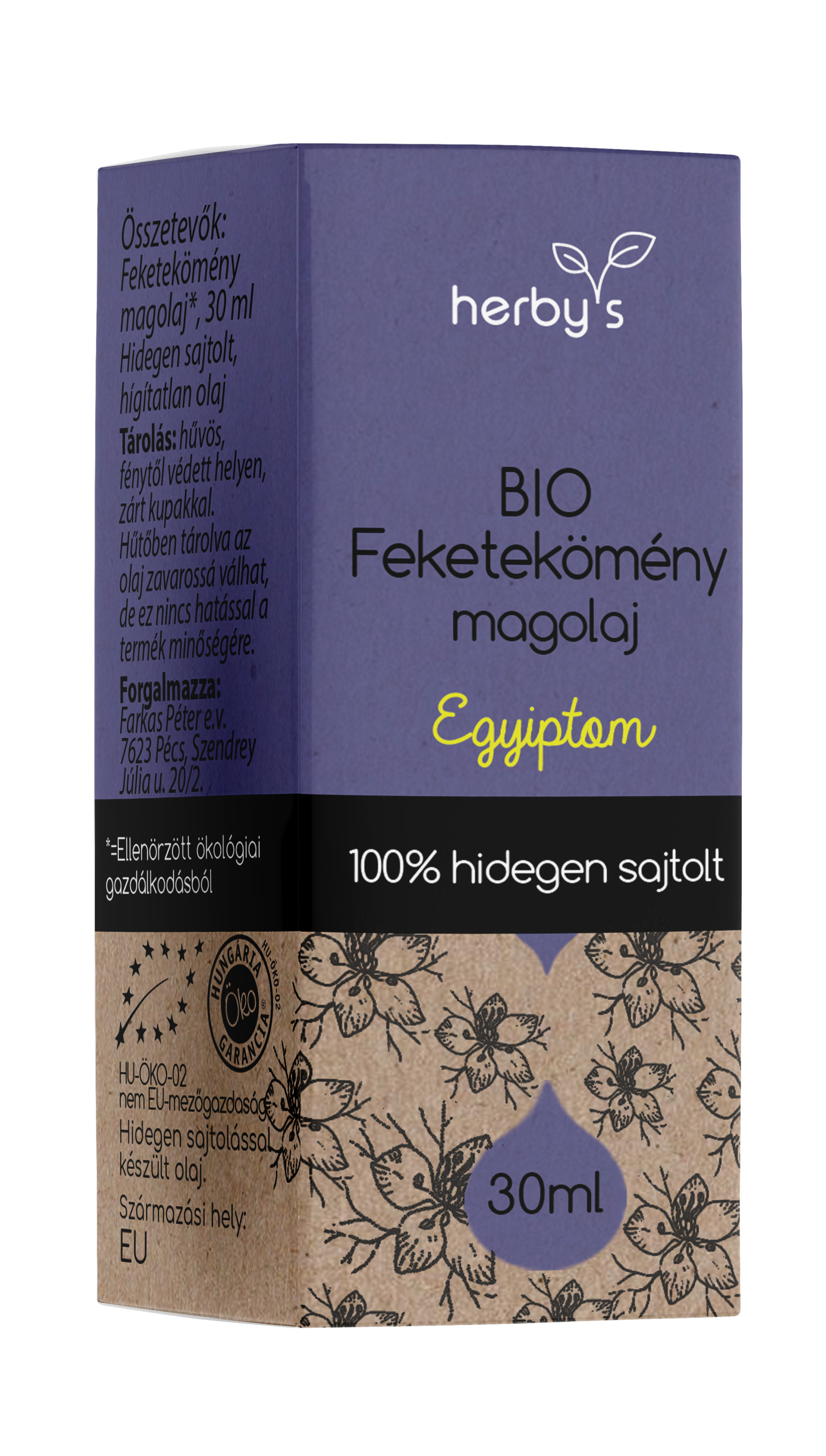 A feketekömény (Nigella sativa) Ázsiában és a Közel-Keleten őshonos kis virágos növény, melynek magjait és olaját több mint 4500 éve használják a gyógyászatban, a légzőrendszer, az emésztőrendszer, a keringési- és az immunrendszer megerősítésére. A feketekömény magolaj karakteres ízű, köményhez vagy oregánóhoz hasonló, kissé keserű és fűszeres. A herby’s feketekömény magolaj Egyiptomban termesztett feketekömény magból készül, hidegen sajtolással. Ha túl erősnek találod az ízét érdemes egy kis mézzel vagy citromlével elkeverve fogyasztani. Rengeteg ásványi anyagot és aminosavat tartalmaz, melyek erősítik az szervezet védekezőképességét és megvédhetik a sejteket a károsító hatásoktól.