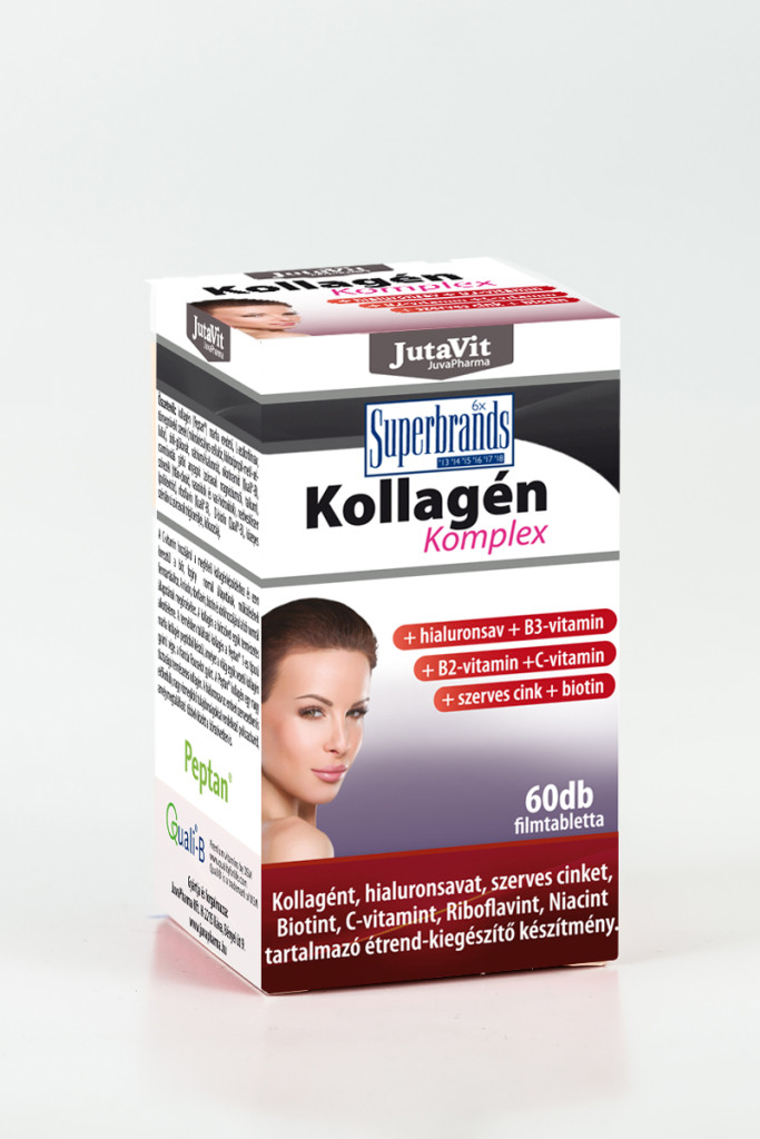 JutaVit Kollagén Komplex + hialuronsav + C-vitamin + szerves cink + biotin + B2-vitamin + B3-vitamin + Színezékmentes.