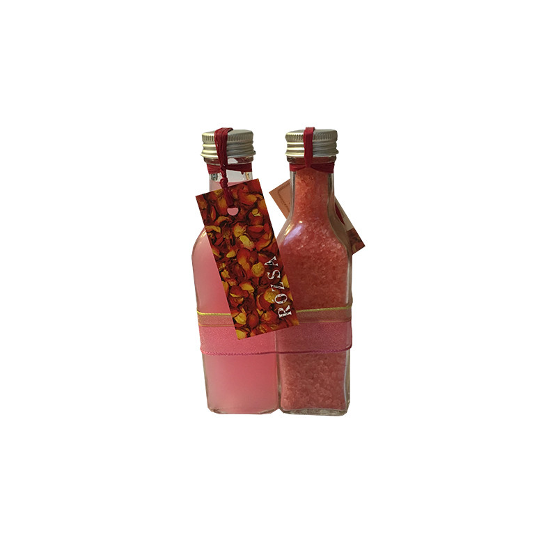 A termék 2 db 100 ml-es, négyszögletes, alukupakos üvegpalack összeillesztéséből áll. Az egyikben rózsa illatú tengeri fürdőkristály, a másikban rózsa illatú tusfürdő található, amit díszmasnis csomagolás fog össze.