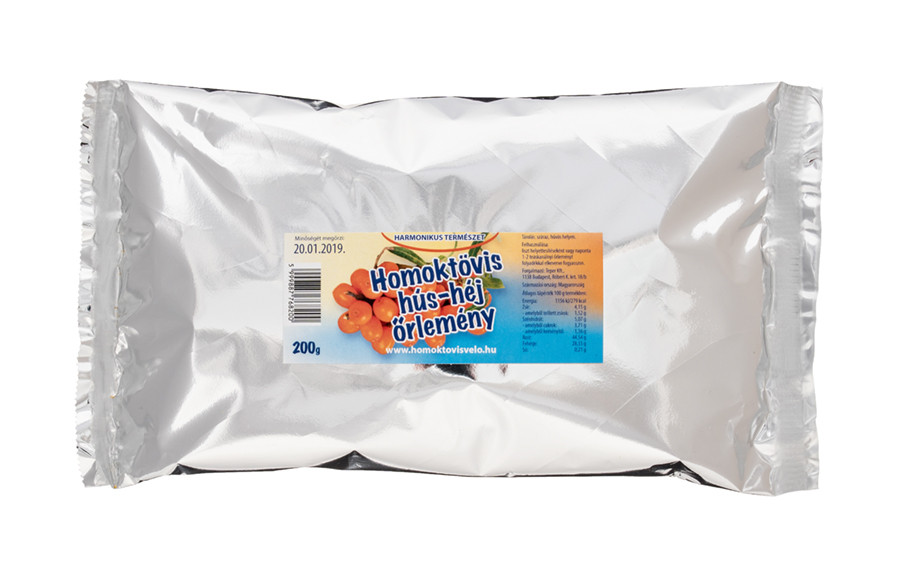 A hús-héj őrlemény (homoktövis liszt) a bio homoktövisbogyó préselése után visszamaradt igen értékes gyümölcs hús, rost és héj kíméletes szárításával, majd porításával készül.