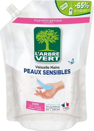 A L’Arbre Vert termékcsalád tagjára jellemző, hogy az alapanyagok kiválasztásánál a növényi eredetű összetevőket részesíti előnyben. Az SCCNFP ajánlása szerint és kifejlesztett L'Arbre Vert termék minden olyan anyagtól mentes, mely felelős az allergiás bőrért. Hypoallergén, állatokon nem tesztelt formula, mely minimalizálja az allergia kockázatát, miközben tiszteletben tartja a legérzékenyebb bőrtípust is. Színezék és izotiazolinon (M.I.T) mentes termék, kompatibilis a szeptikus tartályokkal. A csomagolás 100%-ban újrahasznosítható. Az ARCAA allergológusai által jóváhagyva. Hypoallergén koncentrátum, kifejezetten érzékeny bőrre kifejlesztve. A növényi alapú formulának köszönhetően a zsír belsejébe jutva gyorsan oldja fel a szennyeződést. Praktikus, visszazárható utántöltő csomagolás, mellyel 65%-kal kevesebb műanyag hulladék keletkezik 2 db 500 ml-es flakonhoz képest! A hatékony mosogatás nem igényli a magas fokú habzást, de az edények előáztatása leegyszerűsíti a szennyeződés eltávolítását. Lehetőség szerint ne vízsugár alatt mosogasson, hanem engedjen vizet a mosogatóba tálcába.