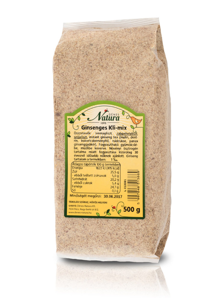 NATURA GINSENGES KLI-MIX Fiatal korban is elkezdhető a szója és egyéb magvak (például a lenmagpehely, vagy lenmagliszt) napi fogyasztása. Kenyér, pogácsa, egyéb tésztafélékbe is bedolgozhatók max. egy evőkanálnyi adagban. Túl sok olajos mag, vagy ezek aprítéka a kenyér... stb állagát tömörré, nehézzé teszi.