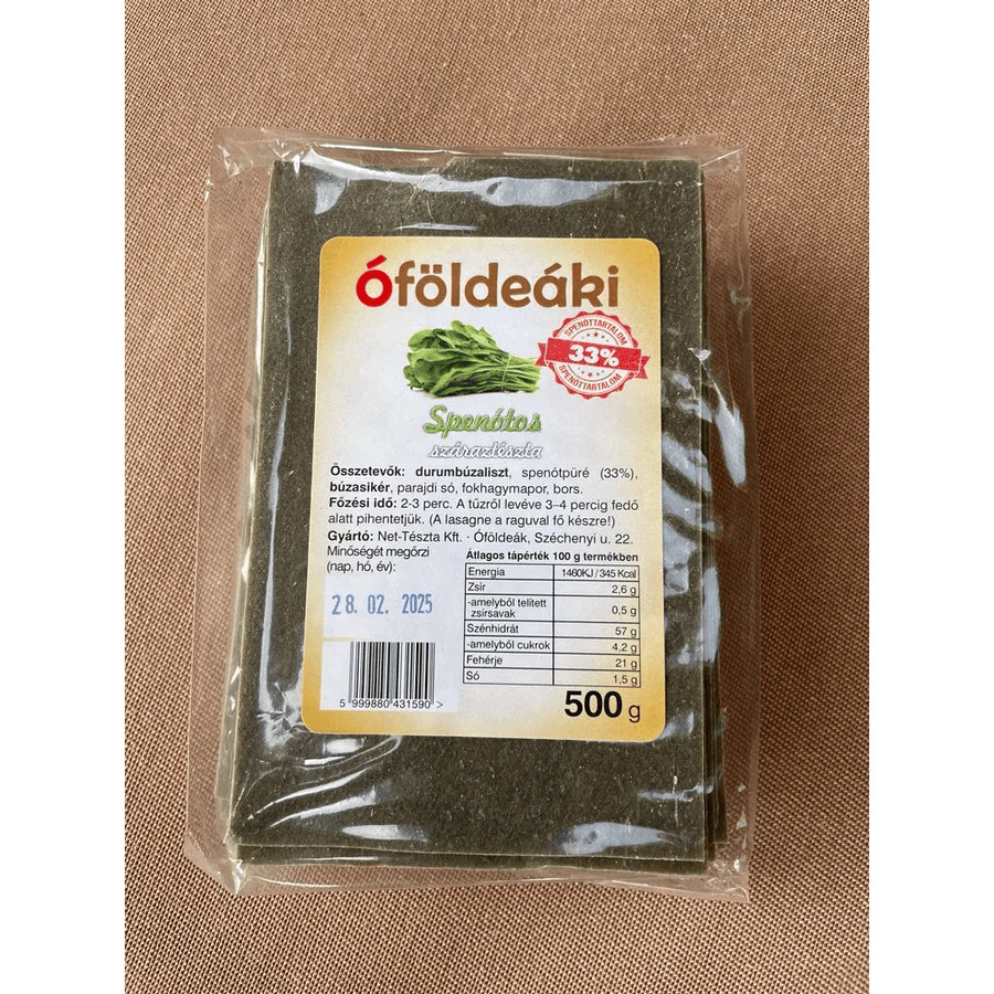 Összetevők: durumbúzaliszt, spenótpüré, búzasikér, parajdi só, fokhagymapor, bors