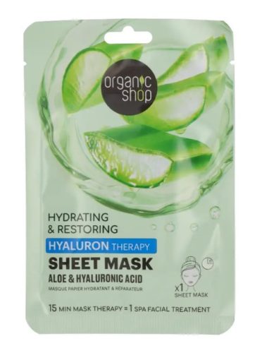 Organic Shop bio fátyolmaszk hidratáló és helyreállító aloe verával és hialuronsavval 25 g