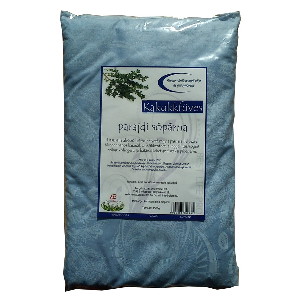 Használja alvásnál párna helyett vagy a párnára helyezve. Mindennapos használata csökkentheti a reggeli tüsszögést, száraz köhögést, jó hatással lehet az éjszakai pihenésre. Mire jó a kakukkfű? Az egyik legősibb gyógynövény, illata intenzív, fűszeres. Élénkít, erősít. Váladékoldó, az egyik legjobb köptető és hurutoldó. Fertőtleníti a légutakat. Erőteljes antimikrobiális hatású. Finomra őrölt parajdi kősót és kerti kakukkfüvet tartalmaz. Használata 2 év alatti gyermekeknek és terhes nőknek nem ajánlott!