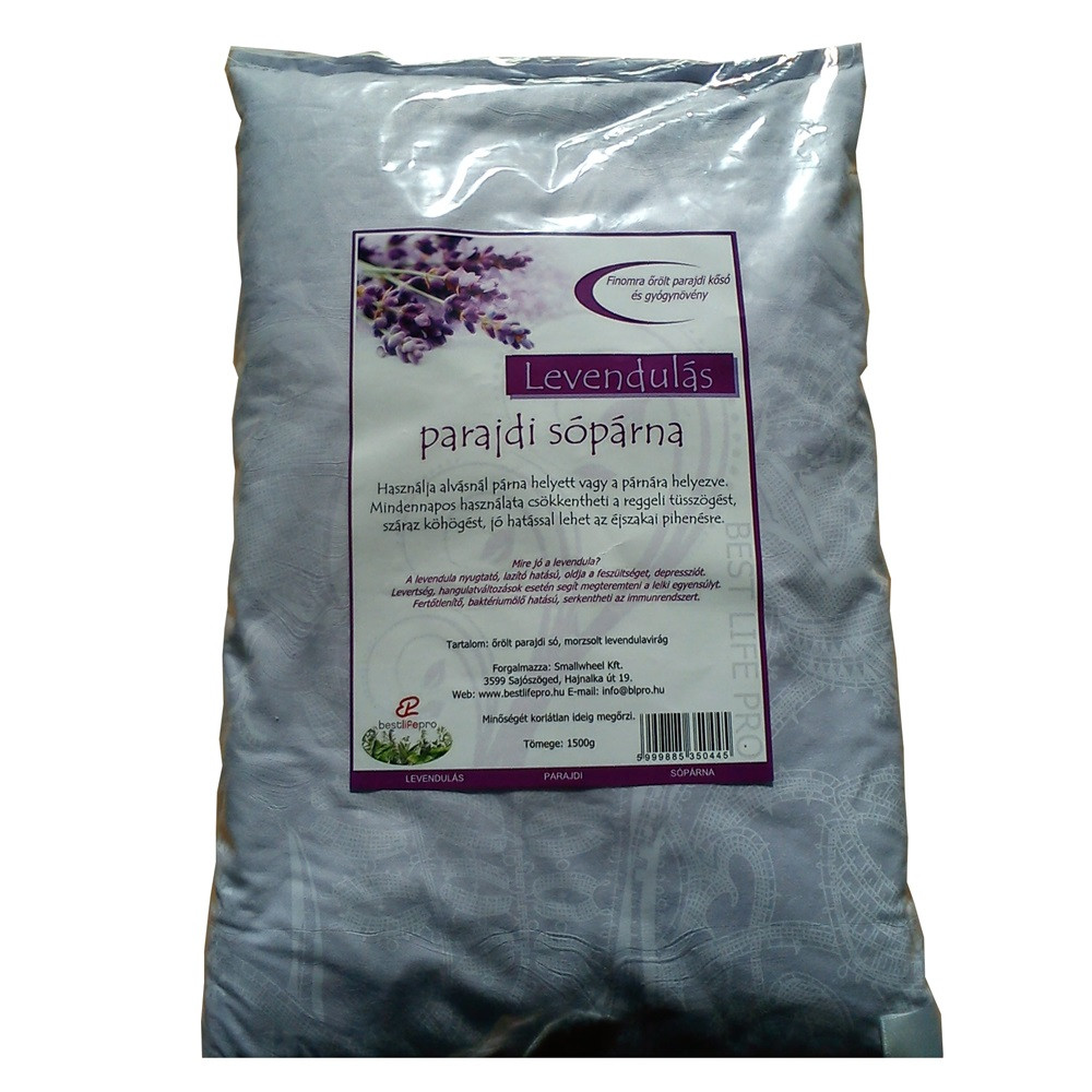Használja alvásnál párna helyett vagy a párnára helyezve. Mindennapos használata csökkentheti a reggeli tüsszögést, száraz köhögést, jó hatással lehet az éjszakai pihenésre. Mire jó a levendula? A levendula nyugtató, lazító hatású, oldja a feszültséget, depressziót. Levertség, hangulatváltozások esetén segít megteremteni a lelki egyensúlyt. Fertőtlenítő, baktériumölő hatású, serkentheti az immunrendszert. Finomra őrölt parajdi kősót és morzsolt levendulavirágot tartalmaz. Használata epilepszia esetén nem ajánlott!