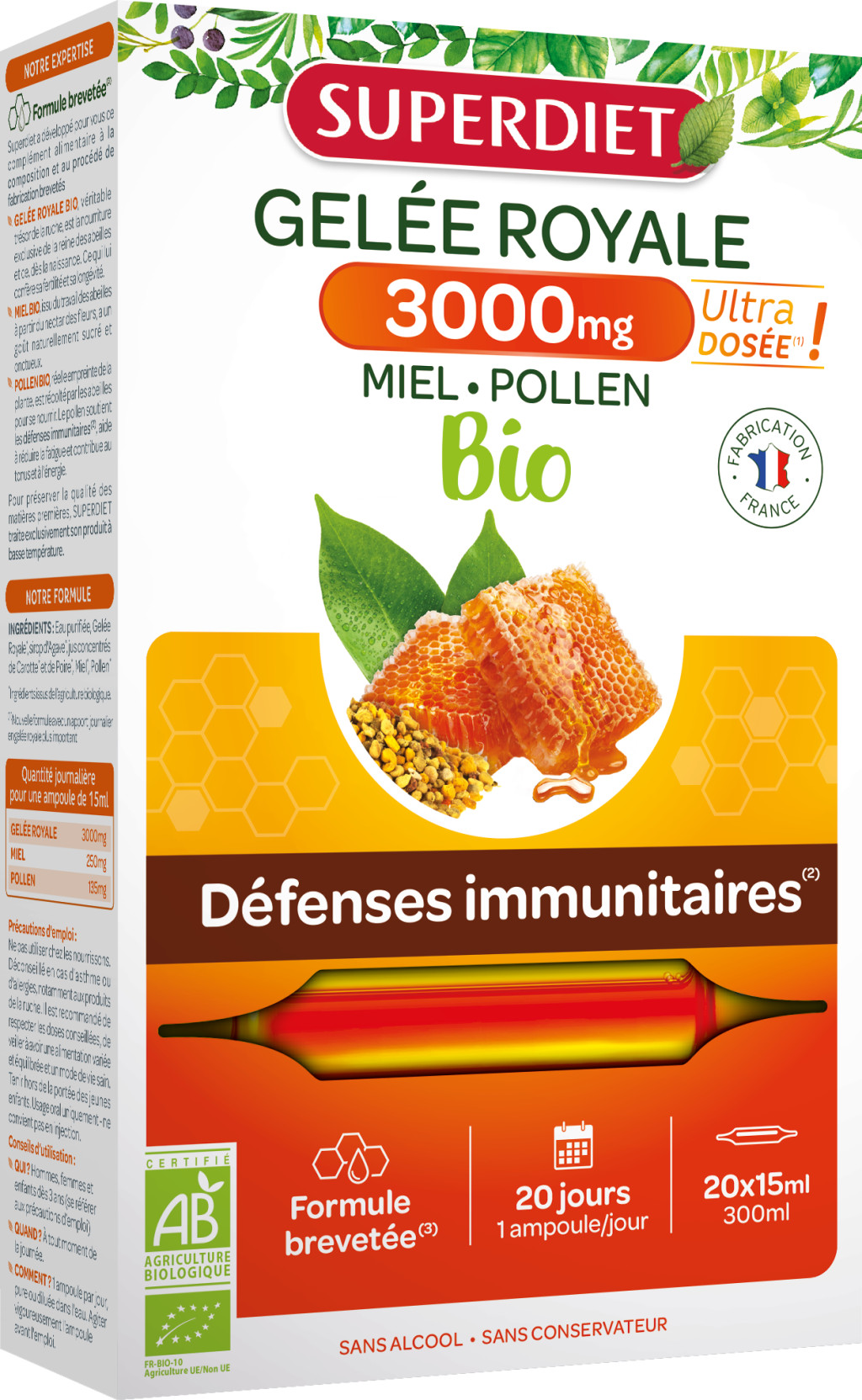 Ez az ampulla a Superdiet kutatásából született, és három kivételes méhészeti összetevőt tartalmaz: