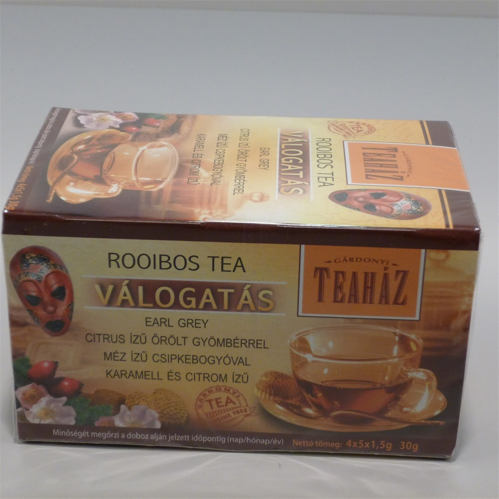 TEAHÁZ ROOBIOS TEA VÁLOGATÁS 4x5 db filteres tea aromazáró borítékban;Earl Grey,Méz,Gyömbéres