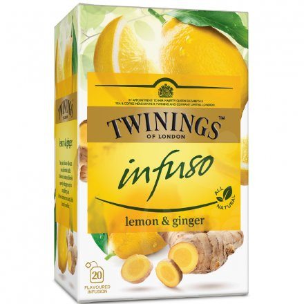 Twinings Citrom és gyömbér filteres herbatea a jó közérzet megőrzése érdekében.