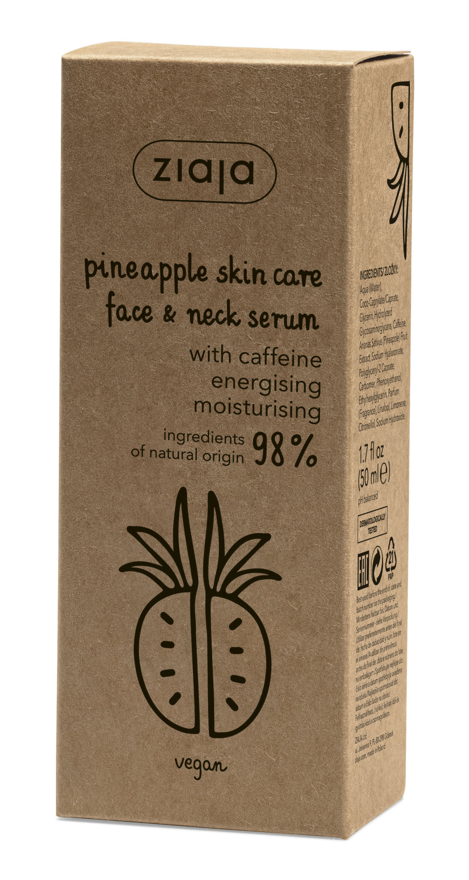 Ziaja ananász arc és nyakszérum koffeinnel 50 ml