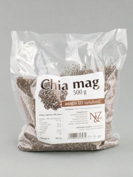 A chiamagot „superfood”-ként is emlegetik, mert teljes értékű fehérjeforrás, kétszer-háromszor annyi proteint tartalmaz, mint más gabonák. Természetes forrása az omega-3 zsírsavaknak, rengeteg vitamint, kalciumot, vasat, rostot tartalmaz. Gyógyító tulajdonságai leginkább kiegyensúlyozott omega-3/omega-6 zsírsav arányának köszönhető, és magas alfa-linolénsav-tartalmának, amely nagymértékben támogatja a szív- és érrendszert. Rostanyagaival nagy mennyiségű vizet képes elnyelni, eltelíti a gyomrot, lelassítja a szénhidrátok felszívódását, megszünteti a gyomorégést és nyugtatja a felfúvódott beleket. Tápanyagtartalom (100g-ban): Energia: 1832 KJ /444 kcal Fehérje: 21,2 g Szénhidrát: 4,9 g Zsír: 31,4 g telített zsírsavak: 3,8 g Omega 6 zsírsav: 6,4 g Omega 3 zsírsav: 18,5 g Élelmi rost: 33,7 g Vitaminok (100g-ban): B1: 0,89 mg B3 (niacin): 11,2 mg E: 29,1 mg Ásványi anyagok (100g-ban): Kálcium: 500 mg Magnézium: 290 mg Foszfor: 535 mg Réz: 1,5 mg